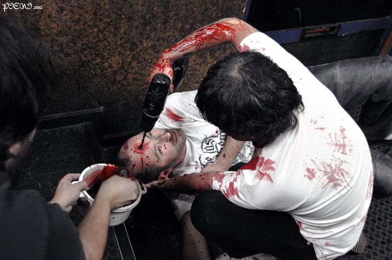 splattering some blood on the drill hole