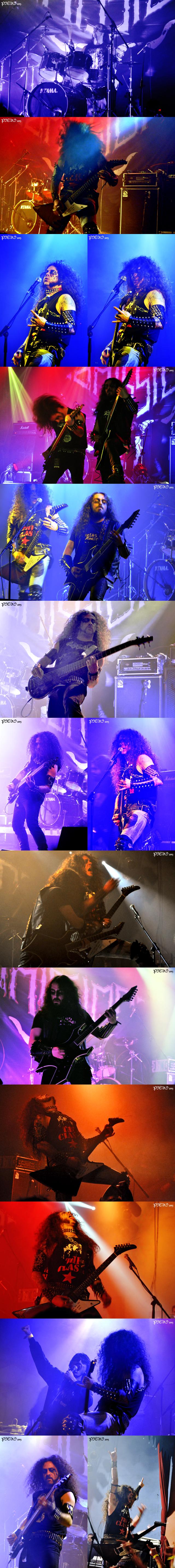 » t’s not the first time that Moita Metal Fest welcomes foreign bands (German Dew-Scented and Contradiction having played in previous editions) and this year Spanish Omission were “the guests”. In full gear, a.k.a. long hair, leather, spikes and bullets, you knew what to expect even before their speedy thrash echoed. The pentagrams and makeup – not quite corpse painting, but close – also gave away the hints of black, but which only the lyrical theme is present (“Satanic Feelings”, which they played close to the end, being the most evident fact of it). The title of their first full-length, “Thrash Metal Is Violence”, translates the effect of their show… Singer Patillas, torn between the fact of playing in a foreign country and that Spanish and Portuguese are very similar, addressed to the crowd in both languages, to the point of saying “Thank you por tudo” at some point. Funny. «