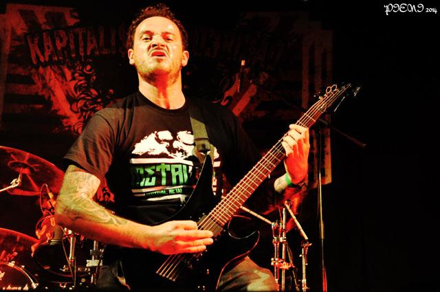 When I first saw the name KAPITALISTAS PODRIDÃO (kapitalists rot – yes, with a “k” – the Portuguese correct form is also with a “c”, as in English), I immediately assumed it was an anarcho-punk band. I was wrong. The anti-political lyrical theme is pretty much the same, but KAPITALISTAS PODRIDÃO is a death metal band. Or at least I think the lyrical theme is the same, given the song introductions made by singer/guitarist Bixo – you can’t really understand the words in a death metal piece unless you have the lyrics in front of you.